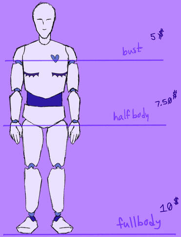 Any additional characters adds 5 dollars!!The only currency I will accept is USD through Paypal, robux, gift cards, and discord nitro occasionally.